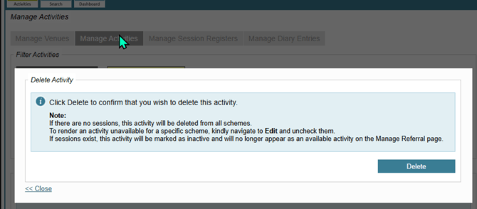 To help prevent accidental deletions across all schemes, a new warning message now appears when a user attempts to delete an activity. This message clearly explains the impact of deleting an activity, helping users make informed decisions and reducing the risk of data loss.