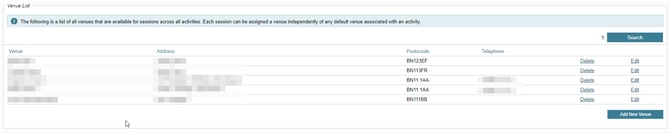 To delete a venue, select the 'Delete' button next to the venue you wish to remove.