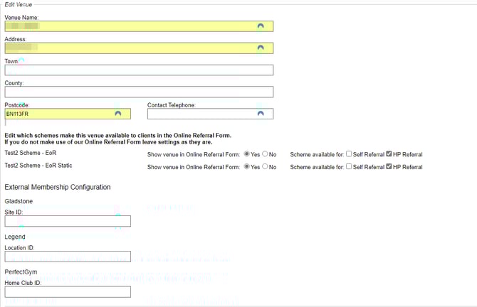 Fill in the 'Venue Name', 'Address' and 'Postcode' fields, the rest are optional.
