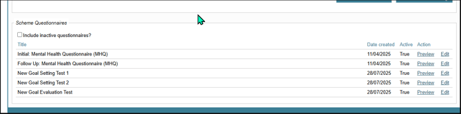 The Questionnaire Date Created will be visible in multiple areas of the system, including Edit Scheme page: