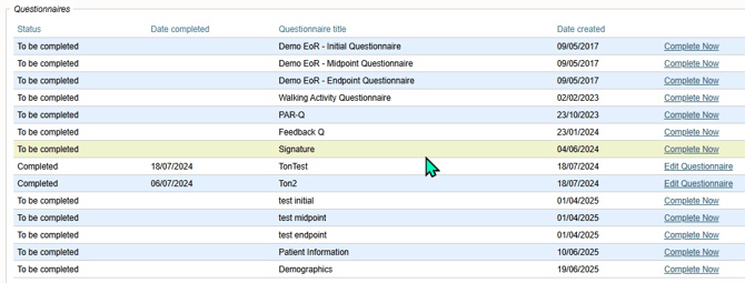 This enhancement helps users track when questionnaires were originally created, compare and transition between old and new questionnaires more confidently, and improve visibility of questionnaire history and changes.