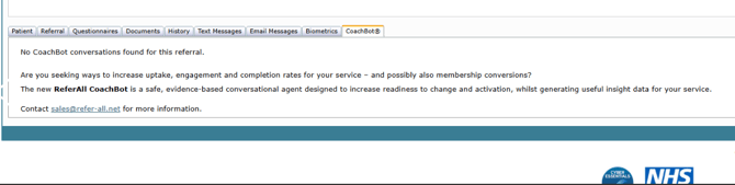 ReferAll receive the conversation and use the GUID to associate the conversation with the correct referral. As part of that process ReferAll also raise a task for scheme admins so they can see that a conversation has been received. During the conversation a referral may elect to not engage with the service. When this happens, ReferAll receive a corresponding code that allows us to suggest that the referral may not want to participate so they can set them to NP.