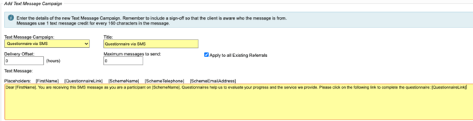 We’ve removed the Delivery Offset option from Questionnaire via SMS campaigns.
