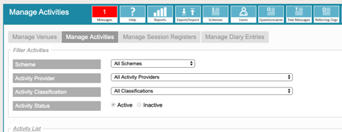 - Additional features in the Manage Activities tab allow you to either Delete the Activity, Edit the Activity or Create Sessions (see Step 3).